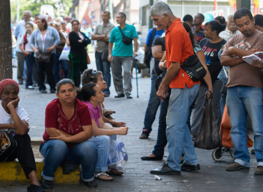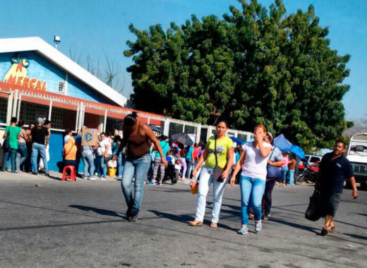 El arribo de policías sugiere que la venta en un mercado de Caracas está por culminar y hay que prevenir una descarga de ira de cientos de personas que hacen fila para abastecerse, una reacción que se multiplica en Venezuela a la par del deterioro económico.