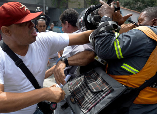 Camarógrafos de Telemundo y Caracol resultaron agredidos por grupos paramilitares y funcionarios de la Guardia Nacional Bolivariana (GNB) en los alrededores de la Tribunal Supremo de Justicia (TSJ).