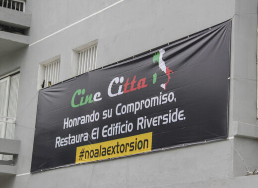 A dos semanas de que los vecinos del edificio Riverside volvieran a denunciar su situación, solo hubo un cambio: una pancarta diseñada por Cine Cittá que los señala de extorsionadores. En esta nota los propietarios y el jefe de obra que contrató la empresa explican lo que sucede