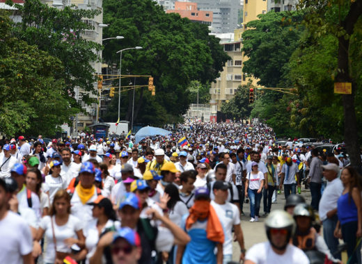La Policía Nacional Bolivariana permitió el paso de una marcha opositora por el oeste de Caracas que llegó a la sede de la Conferencia Episcopal, para honrar a las víctimas muertas de las protestas antigubernamentales de las últimas tres semanas.
