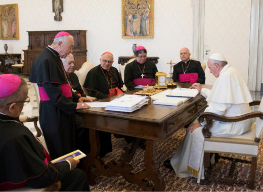 Los miembros de la Dirección de la Conferencia Episcopal de Venezuela (CEV), formada por seis obispos, se reunieron este jueves con el papa Francisco tras pedirle audiencia para informarle sobre la situación del país.