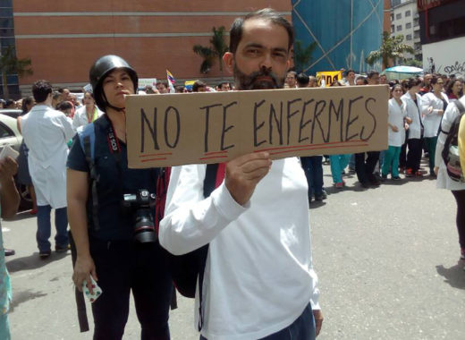 Médicos, enfermeras, personal obrero y administrativo volvieron a protestar a las puertas del Hospital Vargas, en el norte de Caracas, ante la crisis que hunde a esa institución que, incluso, obliga a a comprar hasta las bolsas de sangre para atender a los pacientes.