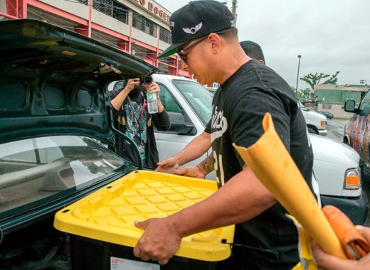 El reguetonero y productor puertorriqueño Daddy Yankee ayudó este martes a entregar los primeros 500 de un total de 2.000 kits para el arreglo inicial de destrozos en casas en Caguas, en el interior de Puerto Rico, como parte de su ayuda para la isla tras el paso del huracán María