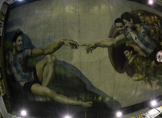 Un club de barrio de la capital de Argentina se atrevió a pintar en su techo un gran mural en el que Diego Maradona es Dios al darle vida a Adán, representado por Lionel Messi, en versión libre del célebre fresco de la Capilla Sixtina.