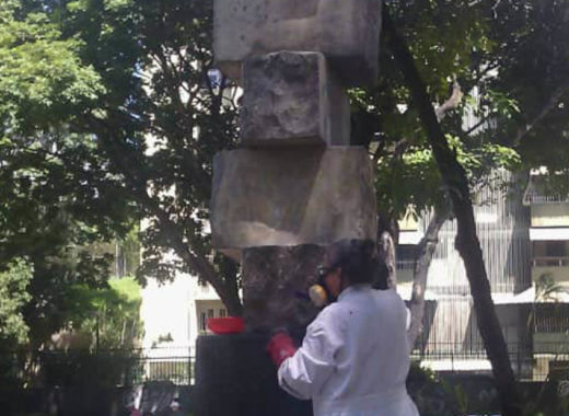 Usuarios de la red social Twitter denunciaron en horas de la mañana que la obra La Estela de Seis Volúmenes, del artista venezolano Francisco Narváez, había sido pintada durante los trabajos del plan Chamba Juvenil que el Gobierno promueve.