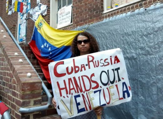 La embajada de Venezuela en Washington, cerrada al público y tomada por activistas estadounidenses, es el centro de protestas y contraprotestas que reflejan la división en el país petrolero. Una venezolana opositora y una militante de izquierda cuentan qué las mueve a movilizarse bajo sol y lluvia.