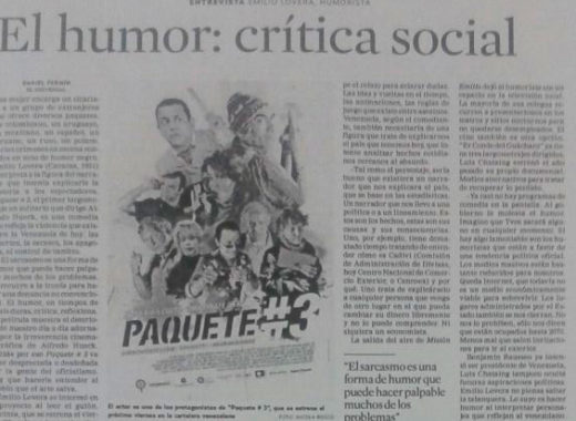 Esta es la entrevista que el periodista Daniel Fermín le hizo al humorista y comediante. Debió publicarse el domingo en el diario El Universal bajo el nombre "El humor: crítica social". Pero fue desaprobada porque los jefes editoriales dijeron que se trata de una "crítica al gobierno".