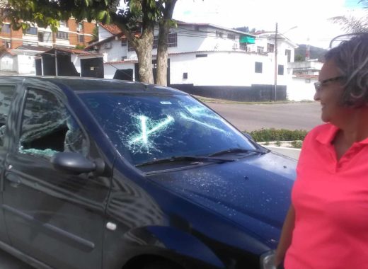Un vehículo marca Renault Logan quedó con sus vidrios completamente destruidos luego que fuera atacado por una caravana de motorizados encapuchados que durante la mañana y parte de la tarde de este sábado se desplazó por varios sectores de San Cristóbal