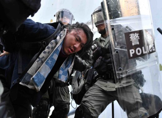 Una protesta no autorizada en Hong Kong degeneró rápidamente en el caos el domingo cuando la policía utilizó gas lacrimógeno para dispersar a los manifestantes, conduciendo a horas de enfrentamientos violentos en el territorio semiautónomo chino.