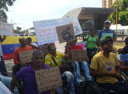 Un grupo de personas con condición de discapacidad en Carabobo salió a protestar en sillas de ruedas para exigir al gobierno y a las autoridades de distintos organismos que vuelquen su mirada hacia ellos y les ayuden a sobrellevar su situación, que se ha agravado con la crisis del país.