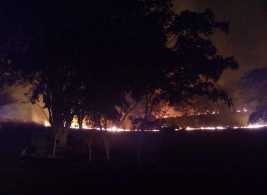 Funcionarios del Cuerpo del Bomberos del estado Bolívar mantienen controlado el incendio de vegetación originado la noche de este miércoles en el Parque La Llovizna.