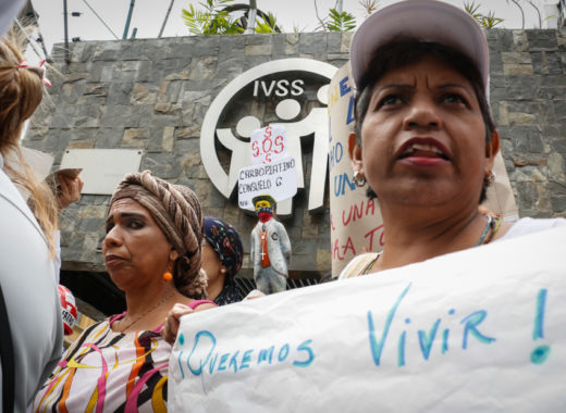 Un grupo de pacientes oncológicos de Caracas, realizaron una protesta frente a la sede del Instituto Venezolano de los Seguros Sociales, IVSS, en la parroquia Altagracia, a pocas cuadras del Palacio de Miraflores, para denunciar la falta de insumos necesarios para realizar los tratamientos de quimioterapia, radioterapia contra el cáncer