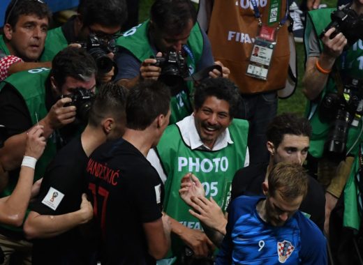 El fotógrafo Yuri Cortez fue uno de los protagonistas extraños luego de que este este miércoles quedara bajo una montaña de jugadores croatas que celebraban el gol de la victoria por 2-1 ante Inglaterra que llevó a la final de Rusia-2018.
