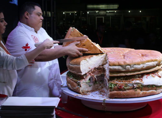 El emblemático establecimiento de comida de calle, El Propio Carlos presentó una creación de más de 130 kilogramos. William Nava, su familia y el cocinero Jesús Olivares mostraron el bocadillo gigante en el marco de la celebración de sus 32 años