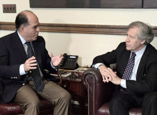 El presidente de la Asamblea Nacional (AN), Julio Borges, se reunió con Luis Almagro, secretario general de la Organización de Estados Americanos, para informarle sobre la situación actual del Parlamento venezolano. Pidió que se mantenga la presión internacional para lograr que se realicen elecciones en el país