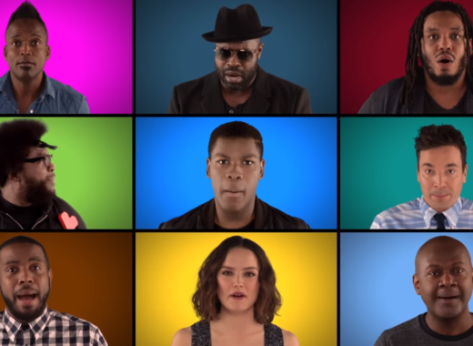 A solo horas que se estrene el séptimo episodio de la famosa saga, el elenco de El despertar de la fuerza se unió al conductor del programa "The Tonight Show" para interpretar la pieza de John Williams usando, solamente, lo que sus voces pudieron dar.