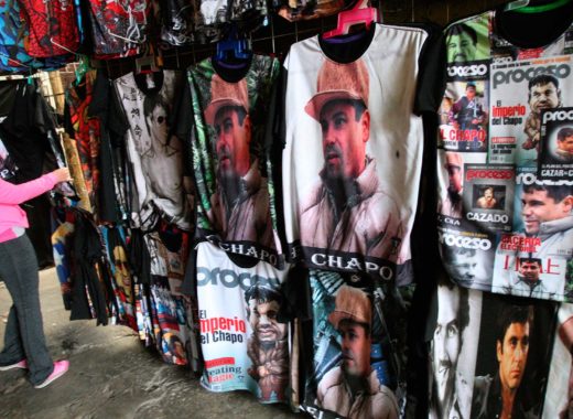 A escasas horas de su sonada fuga de prisión, varios "narcocorridos" ya alababan al son de ranchera esta nueva "hazaña" del capo mexicano Joaquín "El Chapo" Guzmán. Ahora las ventas de camisetas y gorras con su imagen se disparan y algunas incluso están agotadas. La controvertida e icónica figura de "El Chapo", considerado el narcotraficante más poderoso del mundo, se plasma en varias camisetas de venta en internet: con la ficha de la millonaria recompensa que se ofrece por su captura, escapando de una jaula con una bolsa de dinero o bajo la leyenda "Boss" (jefe) con el diseño azul y rojo que usó Barack Obama para su candidatura presidencial en Estados Unidos.