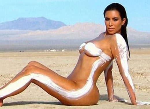 Esta vez la bomba de los medios Kim Kardashian se desviste para su propio programa Keeping up with the Kardashians. Sólo la cubre una línea de pintura blanca