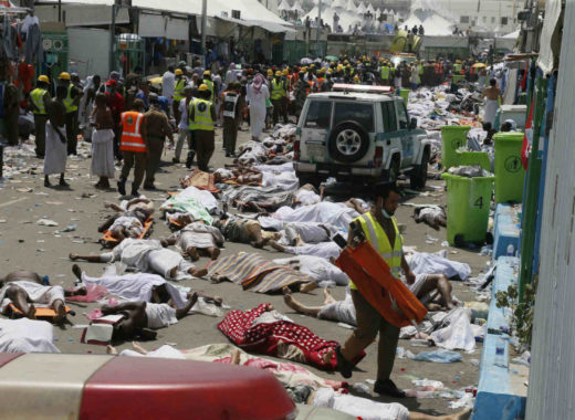 Al menos 717 personas murieron hoy y 805 resultaron heridas en una estampida en las afueras de la ciudad saudí de La Meca, provocada por la aglomeración y la entrada masiva de peregrinos que participaban en el rito musulmán de la peregrinación, informaron fuentes de la Defensa Civil saudí.En un comunicado, las fuentes explicaron que la causa de la tragedia ha sido el aumento en el flujo de peregrinos y la entrada repentina de un gran número de ellos hacia la zona donde se disponían a realizar un ritual.Los fieles se dirigían desde sus campamentos al lugar en el que debían cumplir hoy con el rito de la lapidación de las tres columnas que simbolizan las tentaciones del diablo, durante el tercer día de la peregrinación.