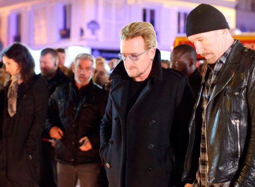 El grupo U2 se recogió en la noche este sábado ante 101 bulevard Richard-Lenoir, en París, donde se llevaba a cabo una velada.