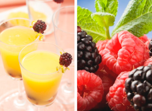 Mimosa de champagne con moras y jugo de naranjas