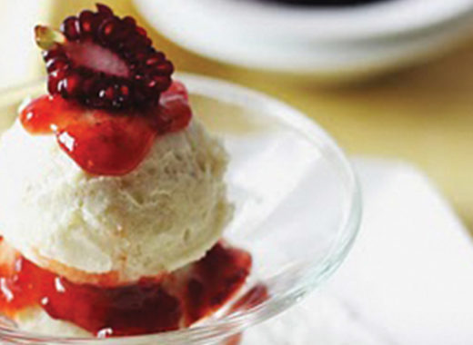 Helado de cardamomo con salsa de moras
