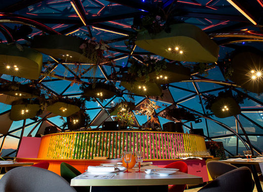 Bajo una cúpula con vista total a toda Barcelona, el restaurante Ovnew ofrece, solo una vez al día, una experiencia totalmente neurogastronómica, con tanto éxito que sus listas de espera son de 6 meses