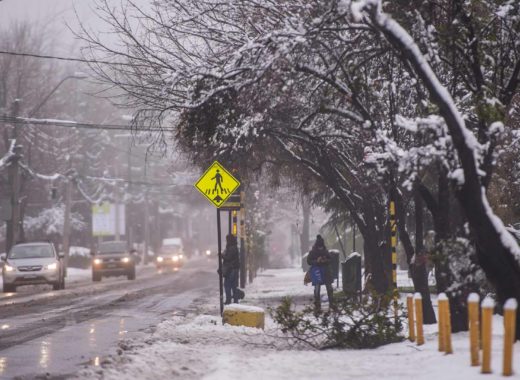La primera nevada del año en Santiago de Chile dejó este 11 de junio calles y carreteras cubiertas de blanco tras una hora de precipitaciones, aunque no causaron grandes inconvenientes de tráfico, informaron desde la Unidad Operativa de Control de Tránsito.La nieve, acompañada de granizo, cayó una semana después del anuncio de la llegada de un frente de mal tiempo que azotó a gran parte de Chile y que dejó a más de 7.000 personas aisladas en el sur del país. La nieve sorprendió a los viandantes en las calles de la capital chilena, quienes se apresuraron a tomar fotografías con sus teléfonos móviles de la estampa invernal.Se cumple así la predicción realizada por las autoridades del país que, de forma preventiva, dispusieron este lunes la suspensión de las clases en más de una treintena de comunas, ante la posible llegada de una gran nevada. La nieve no ha provocado incidentes, más allá de algunas restricciones en el tráfico, según indicó el organismo encargado de velar por la seguridad del tráfico en la ciudad.