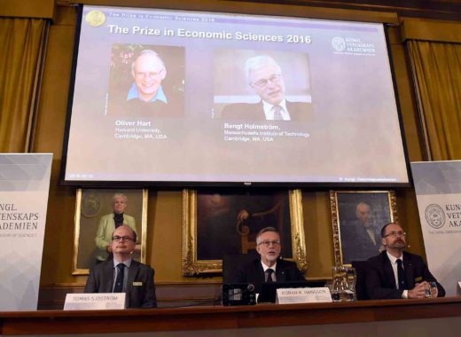 El británico-estadounidense Oliver Hart y el finlandés Bengt Holmstrom fueron galardonados este lunes con el premio Nobel de Economía por sus trabajos sobre la teoría de los contratos, indicó el jurado.