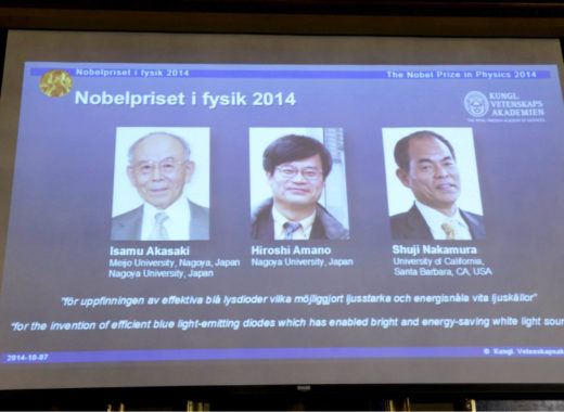 El Premio Nobel de Física 2014 va para los japoneses Isamu Akasaki, Hiroshi Amano y Shuji Nakamura, este último nacionalizado estadounidense, por inventar el diodo emisor de luz LED