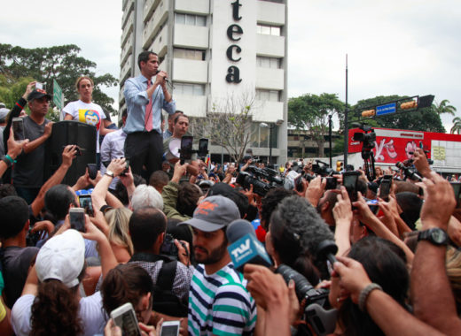 A las 9:44 de la mañana el líder de la Asamblea Nacional, Juan Guaidó, reconocido como presidente interino de Venezuela por más de 50 países, caminó hacia Plaza Altamira junto al líder de Voluntad Popular, Leopoldo López, para exhortar a los funcionarios de la Guardia Nacional Bolivariana (GNB) a que se unan a la lucha por la democracia.
