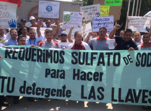 Luego de seis meses de paralización de la línea de jabón en polvo Las Llaves, los trabajadores de la planta Limpieza de Polar, en Valencia, manifestaron para exigir al gobierno agilizar el pago a los proveedores internacionales y así regresar a sus puestos de labores.
