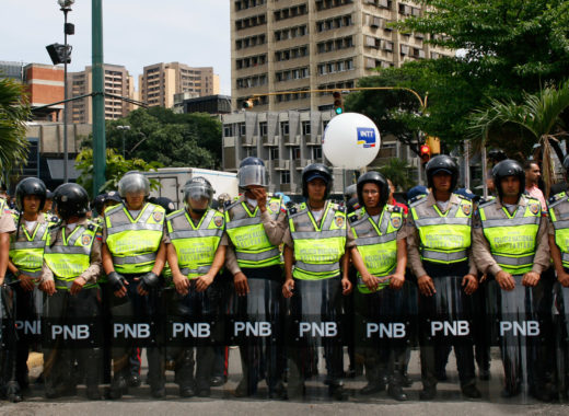 Efectivos de la Policía Nacional Bolivariana (PNB) se mantienen en algunos puntos de la Plaza Venezuela ante el llamado que hizo el gobernador del estado Miranda, Henrique Capriles Radonski, a marchar el día de hoy hasta la sede del Consejo Nacional Electoral (CNE).
