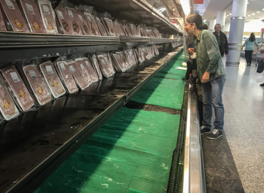 En las instalaciones del mercado de Quinta Crespo, el kilo de pollo beneficiado entero aumentó en un millón de bolívares en tan solo 7 días. De este modo, un ave entera para alimentar a una familia de cuatro miembros cuesta el equivalente a dos meses de trabajo pagado a salario mínimo integral.
