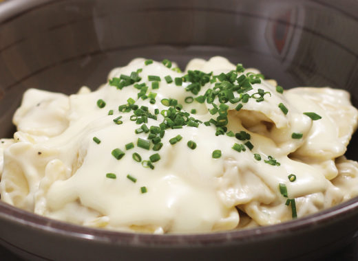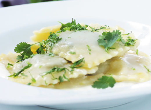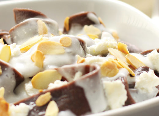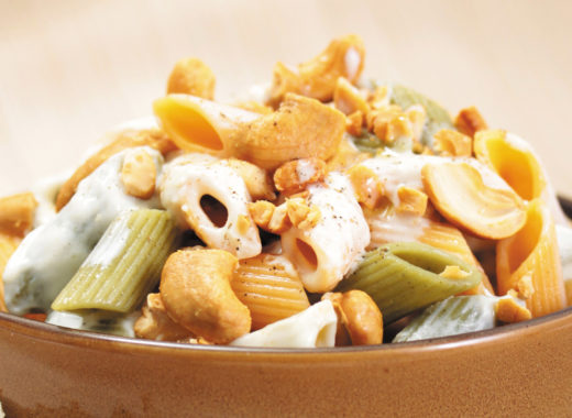 Plumitas con salsa de merey y queso de cabra, para una pasta distinta
