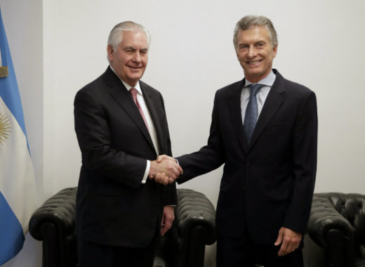 El presidente de Argentina, Mauricio Macri, y el secretario de Estado de Estados Unidos, Rex Tillerson, mantuvieron un encuentro en Buenos Aires en el que abordaron la cooperación bilateral económica y de seguridad y debatieron sobre la agenda del G20 en 2018, bajo el liderazgo argentino.