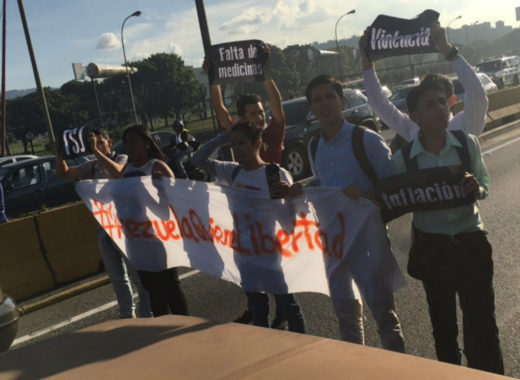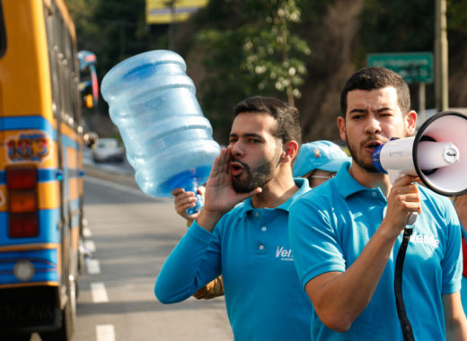La tarde de este viernes, un grupo de militantes del partido Vente Venezuela se concentró en la autopista Prados del Este con vecinos del sector Santa Fe para denunciar irregularidades con el servicio de agua en la zona.