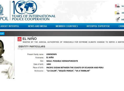 Interpol hace del conocimiento general a la colectividad venezolana que ha recibido una orden de captura al fenómeno identificado como El Niño: solicitado por las autoridades judiciales de la República Bolivariana de Venezuela