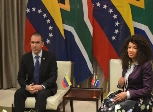 El Canciller de la República, Jorge Arreaza, se reunió este viernes en Sudáfrica con los titulares de Relaciones Internacionales y Energía de ese país para "reforzar las relaciones existentes", informó el gobierno sudafricano.