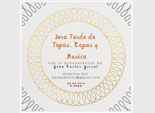 El sabroso rincón Hache Bistró ubicado en el verde y cultural Centro de Arte Los Galpones de Los Chorros celebra este jueves 23 de abril su III edición de Tarde de Copas, Tapas y Música y a petición del público, volverá a contar con la presencia del músico Juan Carlos Grisal Grisal es una de las voces del cancionero venezolano e hispanoamericano. Joven cantante, cuatrista, guitarrista y compositor, interpreta canciones del repertorio popular venezolano, paseándose por géneros como el merengue, la tonada, el vals, la danza, el polo margariteño, los golpes orientales y llaneros. También interpreta canciones del repertorio trovador hispanoamericano, boleros, baladas, bosanovas (cantos brasileños) y temas de los 60 y 70 así como también bailables. COORDENADAS para reservar: