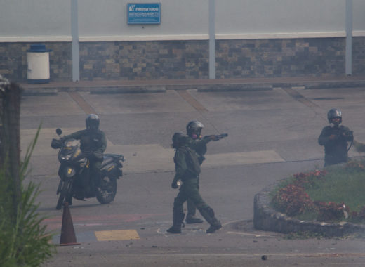 Agentes de la Guardia Nacional Bolivariana dispersaron con bombas lacrimógenas una protesta por falta de comida en el local del estatal Abasto Bicentenario ubicado en la urbanización Terrazas del Ávila, en el este de Caracas.