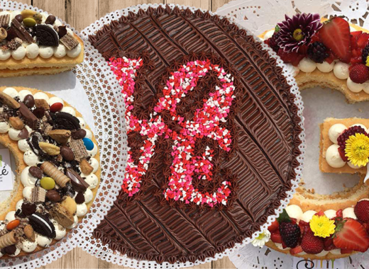 La marca ofrece desde las tradicionales tortas de chocolate, red velvet y zanahoria hasta tortas personalizadas en forma de números o letras rellenas con vainilla y topping de frutos rojos y flores