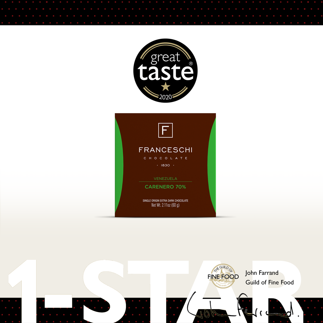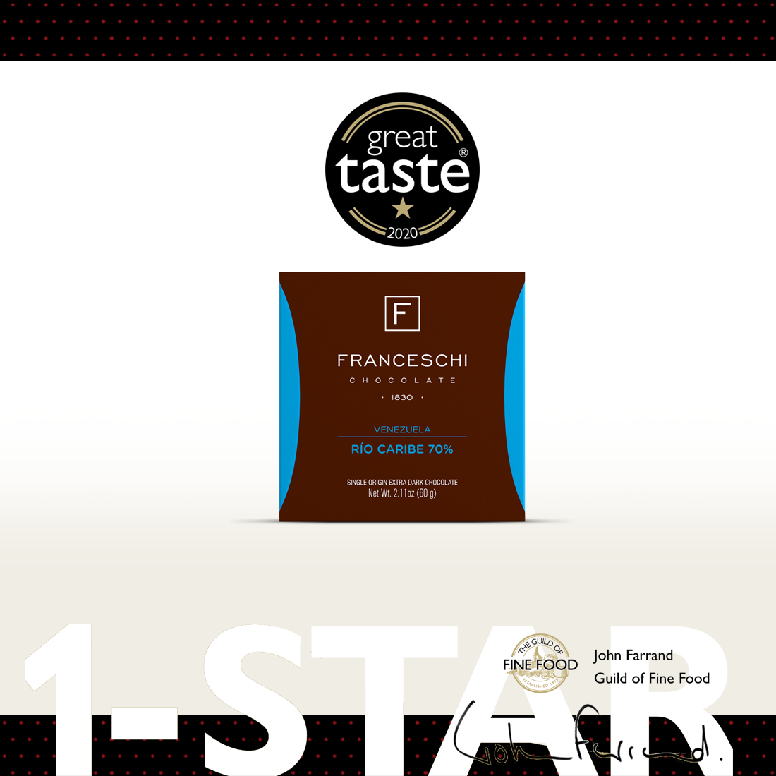 Franceschi, la marca venezolana de chocolates finos recibió cinco galardones en el concurso internacional Great Taste Awards realizados en septiembre en Londres este 2020. Los resultados se conocieron hace pocos días.