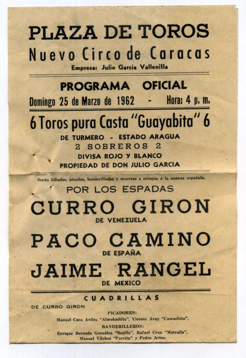 El gran torero venezolano César Girón obtuvo su primer triunfo en una memorable actuación en el coso de El Conde en una novillada criolla al matar seis ejemplares el 1° de octubre de 1951.