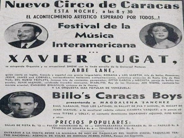 En 1954 hubo un famoso y muy publicitado mano a mano musical entre las orquestas del catalán Xavier Cugat y la Billo´s Caracas Boys.