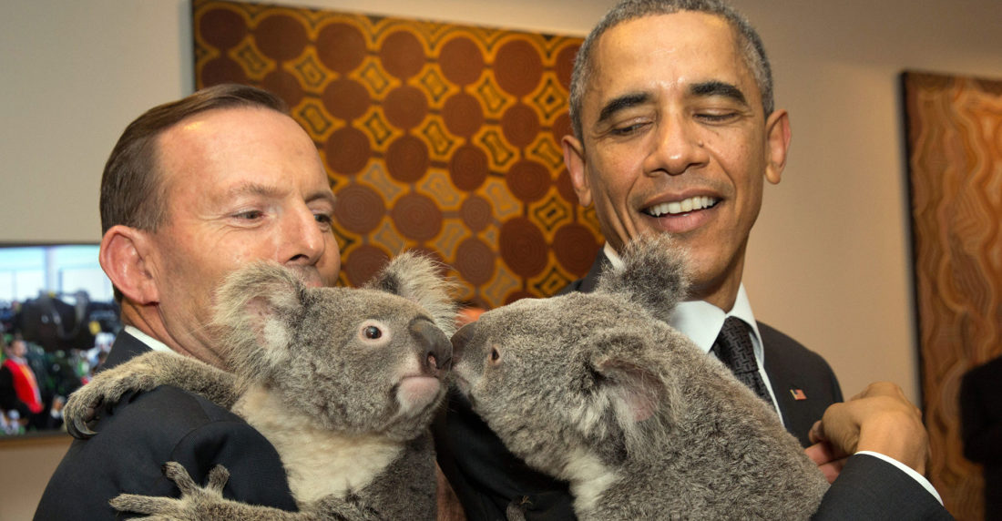 El presidente de Estados Unidos, Barack Obama; la presidenta de Brasil, Dilma Rousseff; Stephen Harper, primer ministro de Canadá; Ángela Merkel, canciller de Alemania; Park Geun-hye, presidenta de Corea del Sur; John Key, primer ministro de Nueva Zelanda y Tony Abbott, primer ministro de Australia, fueron algunos de los que posaron para las cámaras abrazados con los animales típico de Australia.
