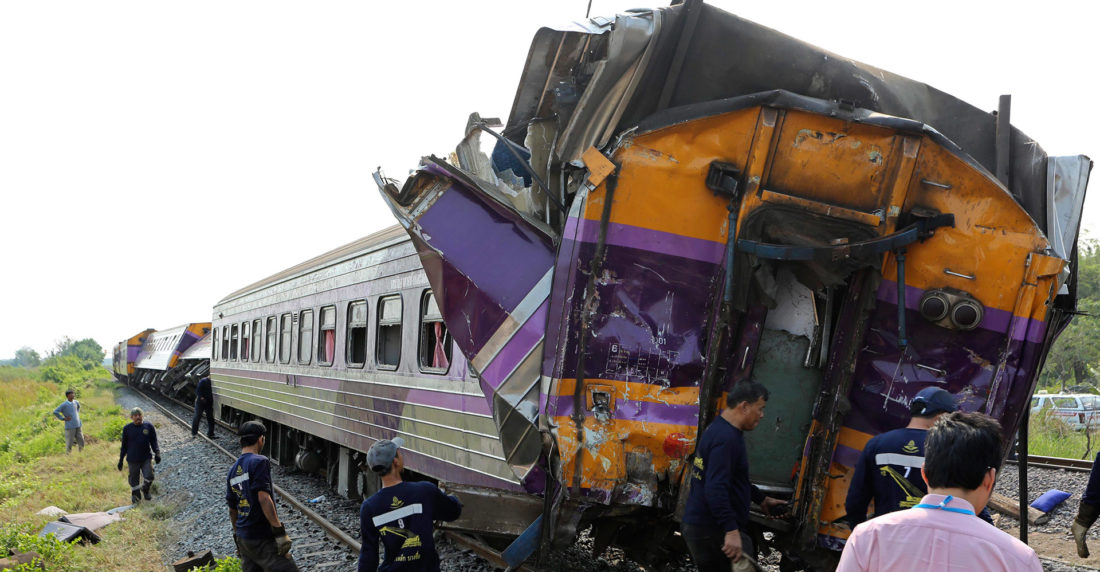 Un tren en marcha, con dirección a Bangkok, golpeó la parte trasera de otro tren estacionado.