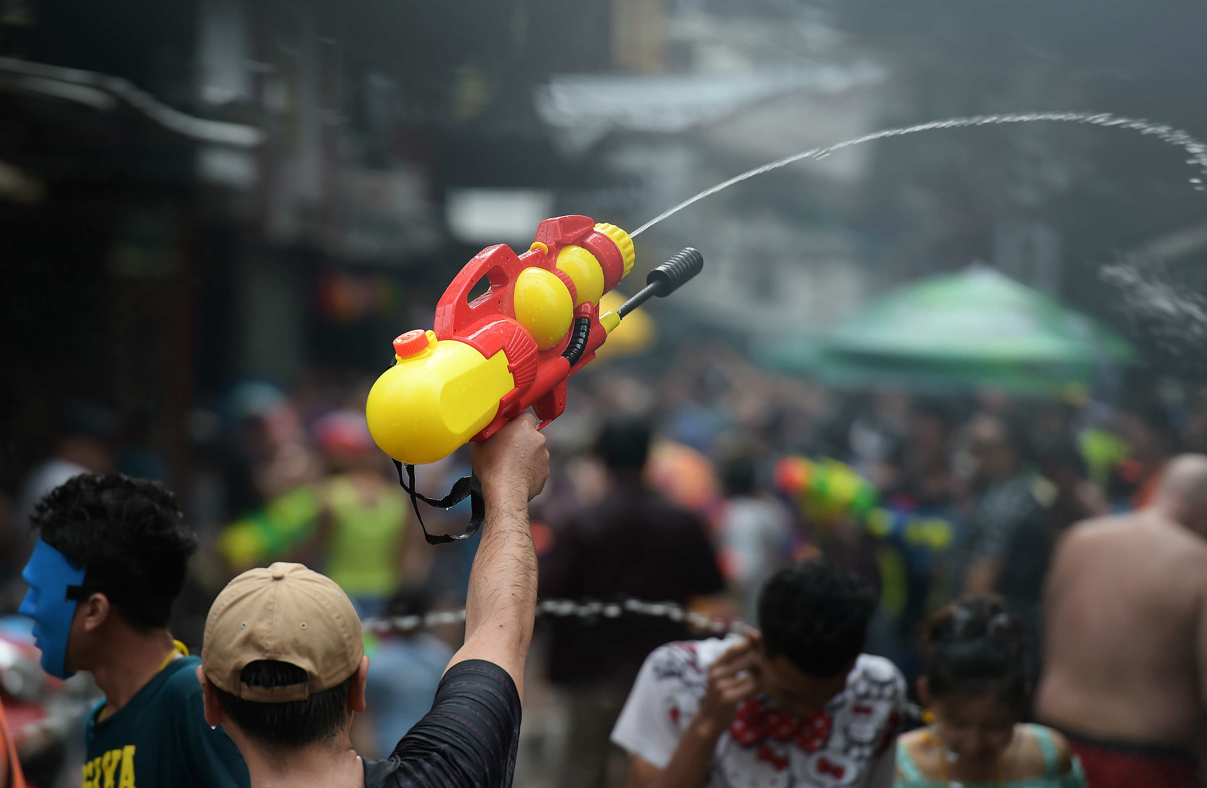Originariamente, los participantes vertían agua sobre las manos de las personas mayores en señal de respeto y buena suerte, una costumbre que aún perdura, pero que mayoritariamente ha mutado hasta convertirse en batallas campales e incluso fiestas de la espuma.