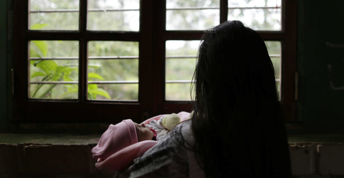 Sentadas alrededor de una mesa, las nueve chicas que ahora viven en el hogar parecerían adolescentes en una excursión del colegio, de no ser por las cunas que tienen al lado, los bebés que sostienen en el regazo o los pequeños que gatean entre las sillas, y que las llaman «mamá».