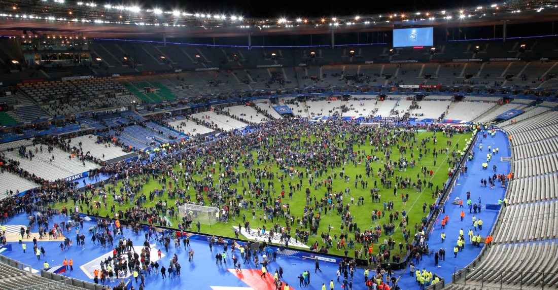 Cientos de personas saltaron al terreno de juego en el Stade de France después de que se escucharon explosiones cerca de allí durante un partido amistoso entre las selecciones de Francia y Alemania.